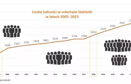 W ciągu ostatnich 5 lat liczba ludności w Siekierkach wzrosła o ponad 50 procent i wg ewidencji ludności gm. Kostrzyn na dzień 31.12.2023 przekroczyła liczbę 3 000 mieszkańców.